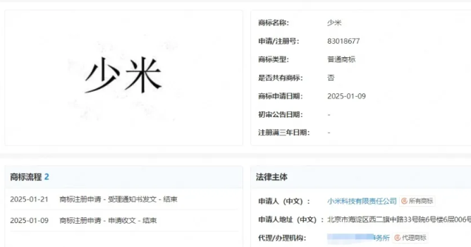 快讯丨小米注册“少米”商标;腾讯申请“小海宝AI”商标!