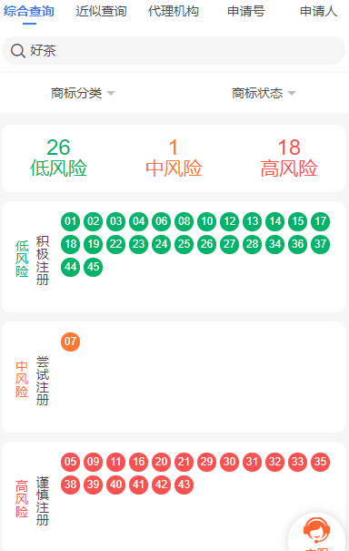 手机微信搜索[知协]小程序,首页搜索框即可进行免费的商标查询。申请人可以将自己的商标名称输入进去,可以得到一个简单的「风险评估报告」,包括哪些类别是低风险、哪些类别是中风险、哪些是高风险,让您对商标注册成功率有个大概的掌握。如果风险较高,建议调整商标名称。