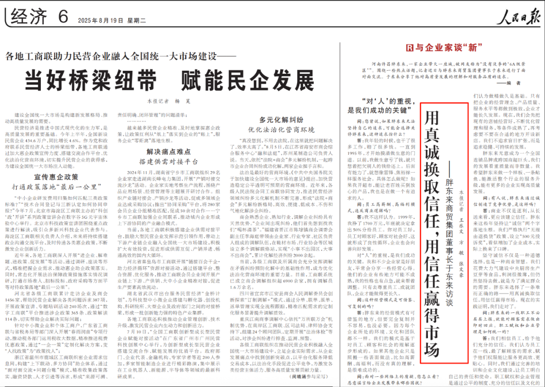8月19日,《人民日报》用近乎三分之一的版面,刊登了对胖东来董事长于东来的专访。