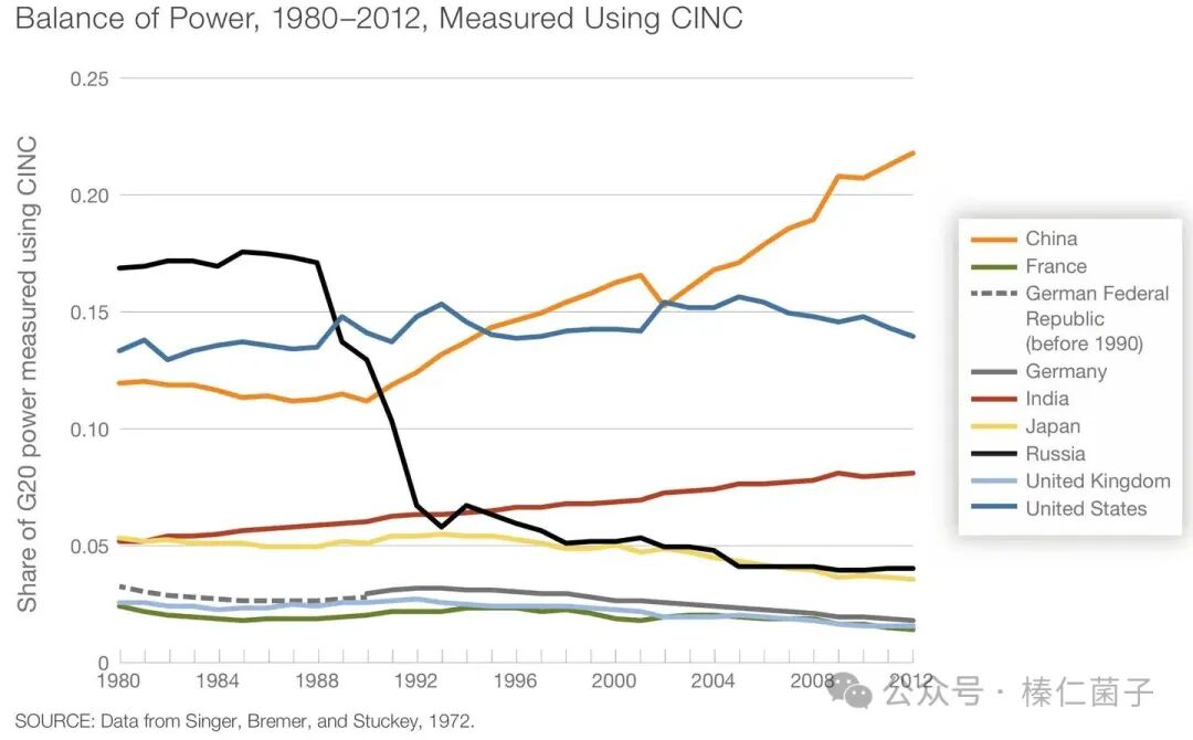 【编注:综合国力……感觉已经很多年没有听过这个名词了。遥记小时候社会、地理或者政治之类的课本里,国家实力之间还是以综合国力来比较的,大概因为当年GDP不好看,所以搞出个综合国力这种很难量化的模糊概念。今天看到这个问题,死去的记忆突然袭击了我。】