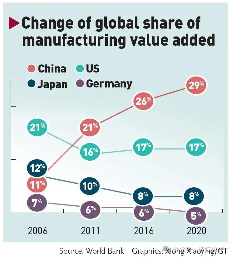 早在 19 世纪末英国的制造业产出就被美国赶超,但大英帝国要再过半个多世纪历经两次惨烈的大规模工业化战争才最终谢幕。