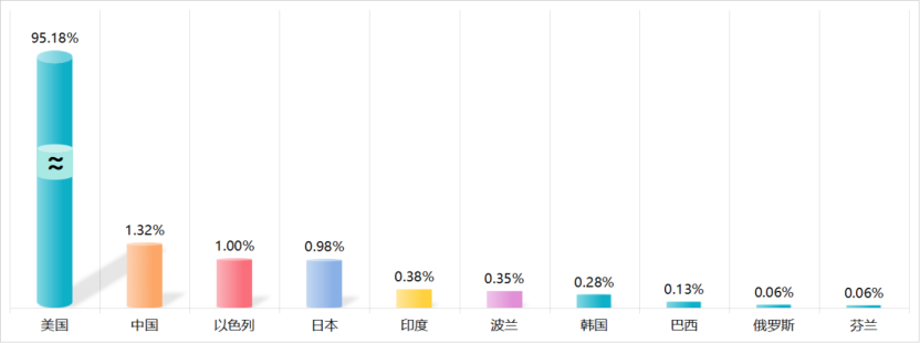 第三名为以色列,第四名是日本,实力系数都是全球的1%;第五名是印度,实力系数为全球的千分之四;第六名是波兰,第七名是韩国,综合实力系数都是千分之三;其他国家都在千分之一及以下。由此可见美国在软件产业的强大程度,其强大程度在所有的产业里是非常夸张的。