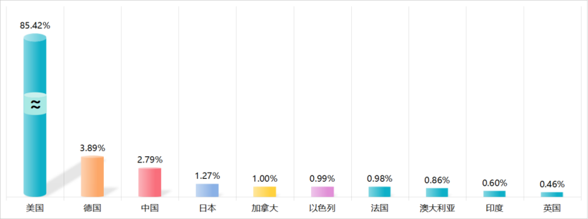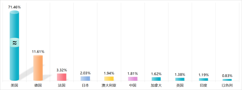 全球排名第二的是德国,综合实力系数为11.6%;第三是法国,为3.3%;第四是日本,为2%;第五是澳大利亚,为1.9%。第六是中国,为1.8%。