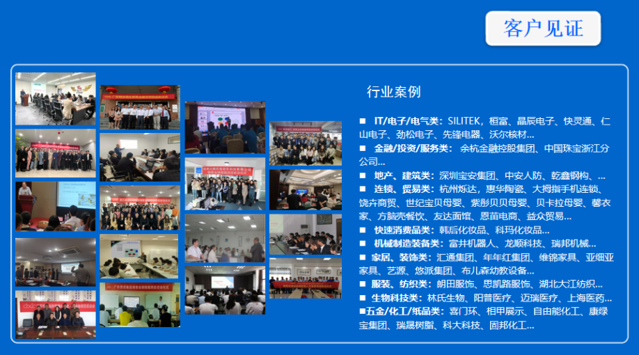 Ø广东省企业管理咨询行业十大金牌咨询师;多家国内地区知名企业管理咨询公司(北大纵横、正略钧策、博商管理……等)顾问师。