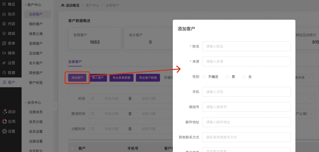 操作路径:官微中心 - 客户-全部客户