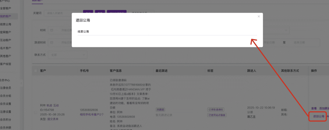 iii. 修复我的客户-退回公海功能