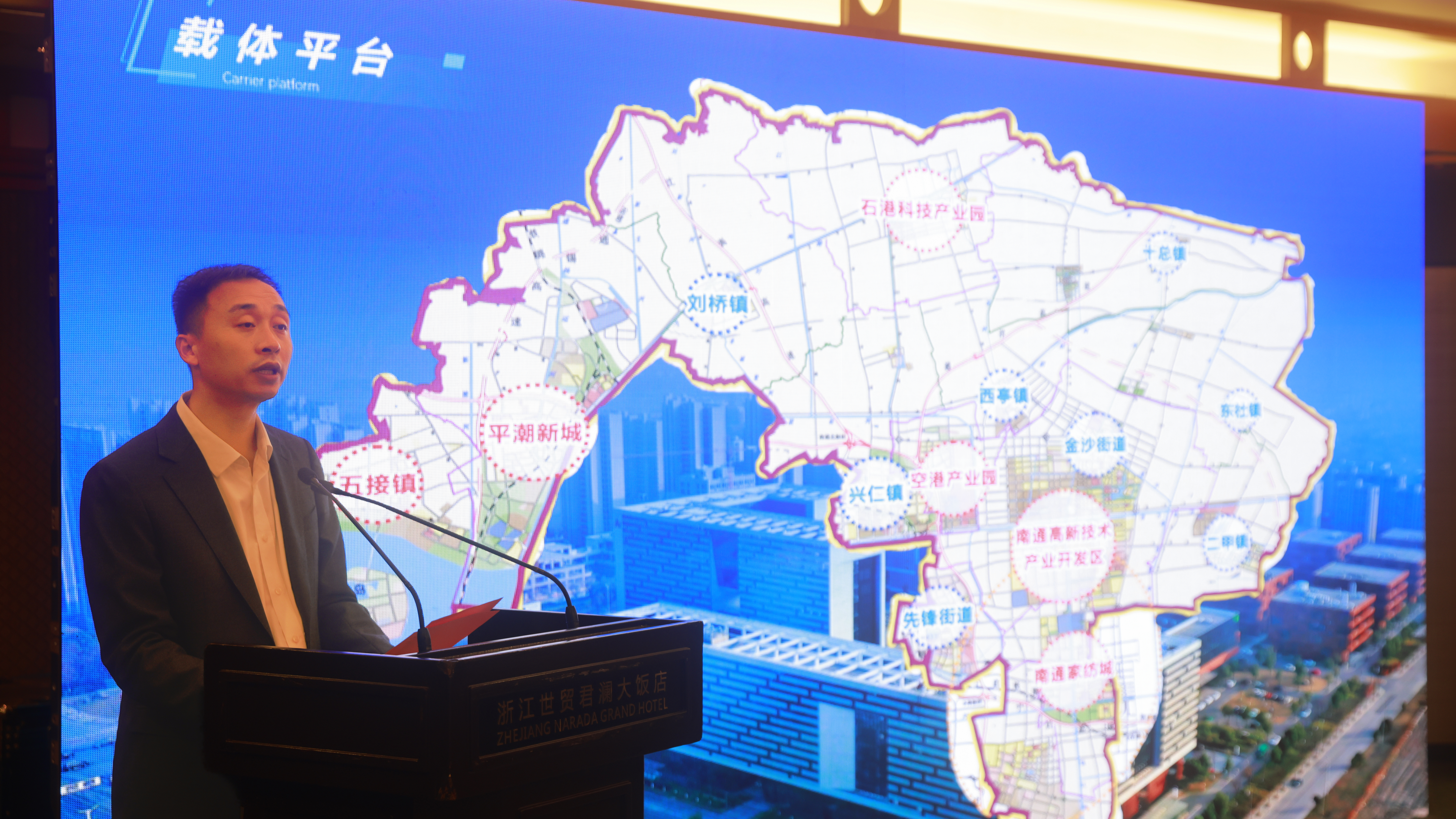推介环节中,通州区投资服务中心副主任钱玉龙详细解读了通州区的投资优势、政策支持以及营商环境。此外,通州区石港镇、川姜镇、平潮镇、金沙街道、二甲镇、先锋街道分别介绍了各自特色产业与发展规划,为投资者呈现了多元化的选择。