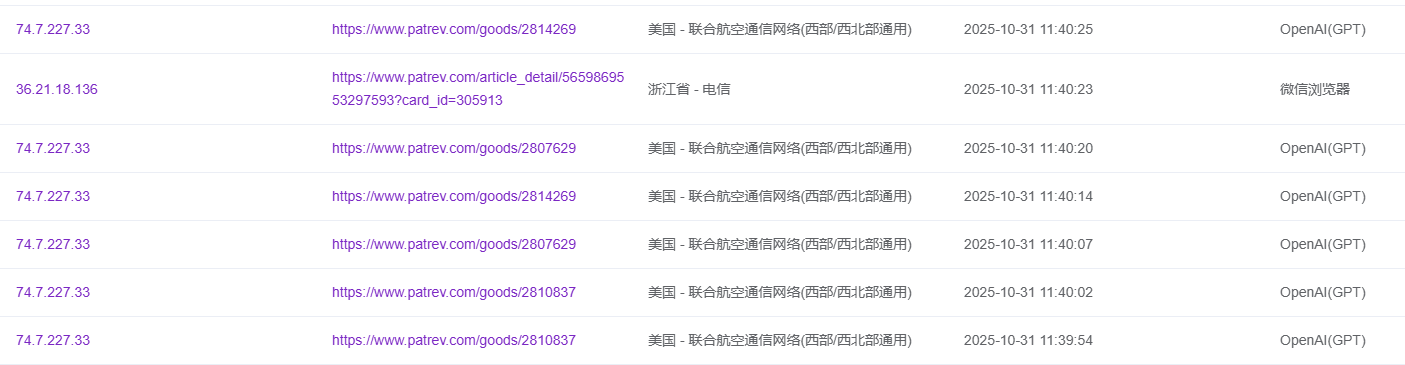 最近20天的入站数据分析显示,我的独立站被 OpenAI、豆包、DeepSeek 等多个大模型的网络蜘蛛频繁抓取。通过反向链路分析发现:AI蜘蛛尤其偏好结构清晰、逻辑分层明确的内容页面。
