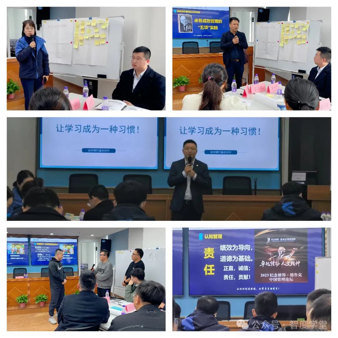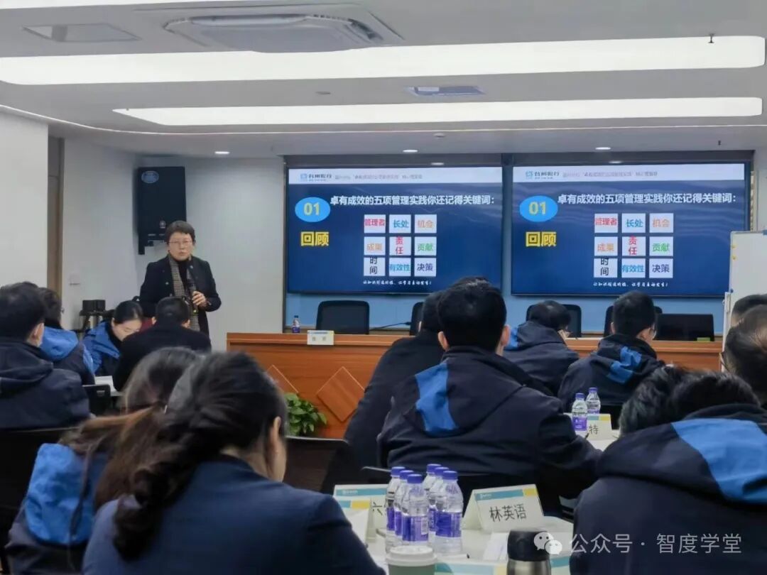2024年,由德鲁克点灯人,传播与实践德鲁克思想的企业教练张京老师带给了台州银行的小伙伴们一场精彩的认识与思维突破,《卓有成效管理的五项实践》课程,走进了台州银行温州分行。课程中聚焦管理实战,多维度、全方位探索企业管理之道,突破认知局限,转变思维方式,通过挖掘内在动力,推动目标管理、自我控制以达成组织使命。