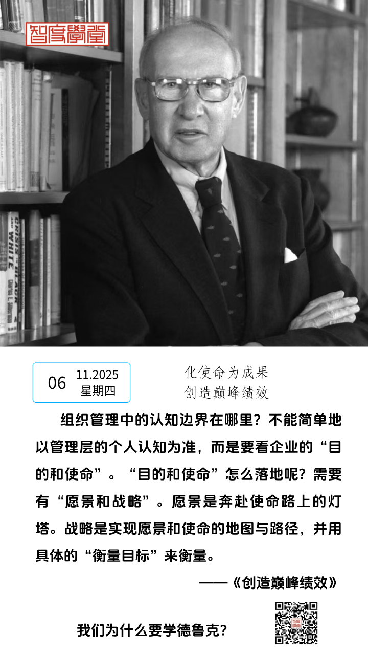 组织管理中的认知边界在哪里?不能简单地以管理层的个人认知为准,而是要看企业的“目的和使命”。“目的和使命”怎么落地呢?需要有“愿景和战略”。愿景是奔赴使命路上的灯塔。战略是实现愿景和使命的地图与路径,并用具体的“衡量目标”来衡量。