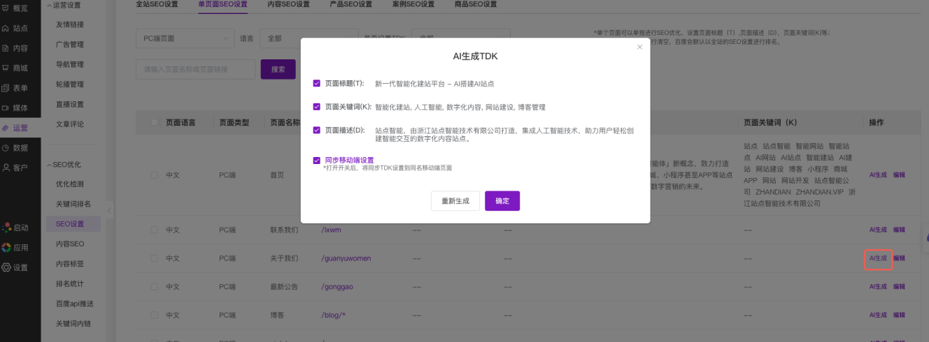 RGTRANS跨境物流(cargo314.com)主要做中美专线货运,以前靠线下跑展会找客户,成本高还没效果。接入AI站点后,不用懂SEO也能引流:在“营销枢纽-运营-SEO设置”模块,用“批量AI生成TDK”功能,系统会结合“中美专线货运”行业属性,自动生成页面标题、描述和关键词(比如“中美专线货运时效”“跨境物流怎么清关”)还在“关键词内链”模块添加了核心业务词和对应页面链接,文章中出现这些词时会自动跳转,帮助搜索引擎提升页面权重。借助站点智能的SEOAI功能,他们不用花一分钱广告费,客户在百度搜相关关键词时,官网能靠前显示。作为内测反馈,他们首月就通过官网接到了3个真实的国际货运订单,彻底验证了AI站点的主动获客能力。