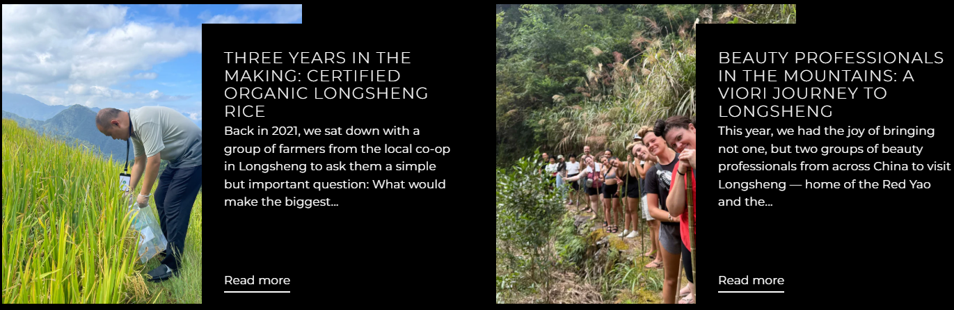 2013年,Viori的创始人来到了广西龙胜的一个红瑶族村落,发现红瑶族的女性都有一头乌黑漂亮的长发。和当地人交流之后,他们了解到红瑶族人有个非常古老的护发传统,就是用的发酵米水和中草药洗头。受到这个启发,2019年viori就成立了!他们就用那个淘米水配方,做了一个洗发香皂出来,洗发香皂以米水为主要成分,不含硫酸盐、对羟基苯甲酸酯等化学物质,包装采用可回收材质,深受环保主义者的,售价在10-3030美元之间。