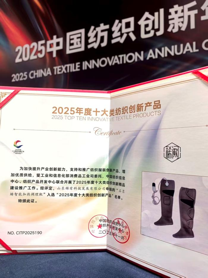 重磅荣誉!山东稀有科技石墨烯智能穿戴荣登2025年度十大创新纺织产品榜单