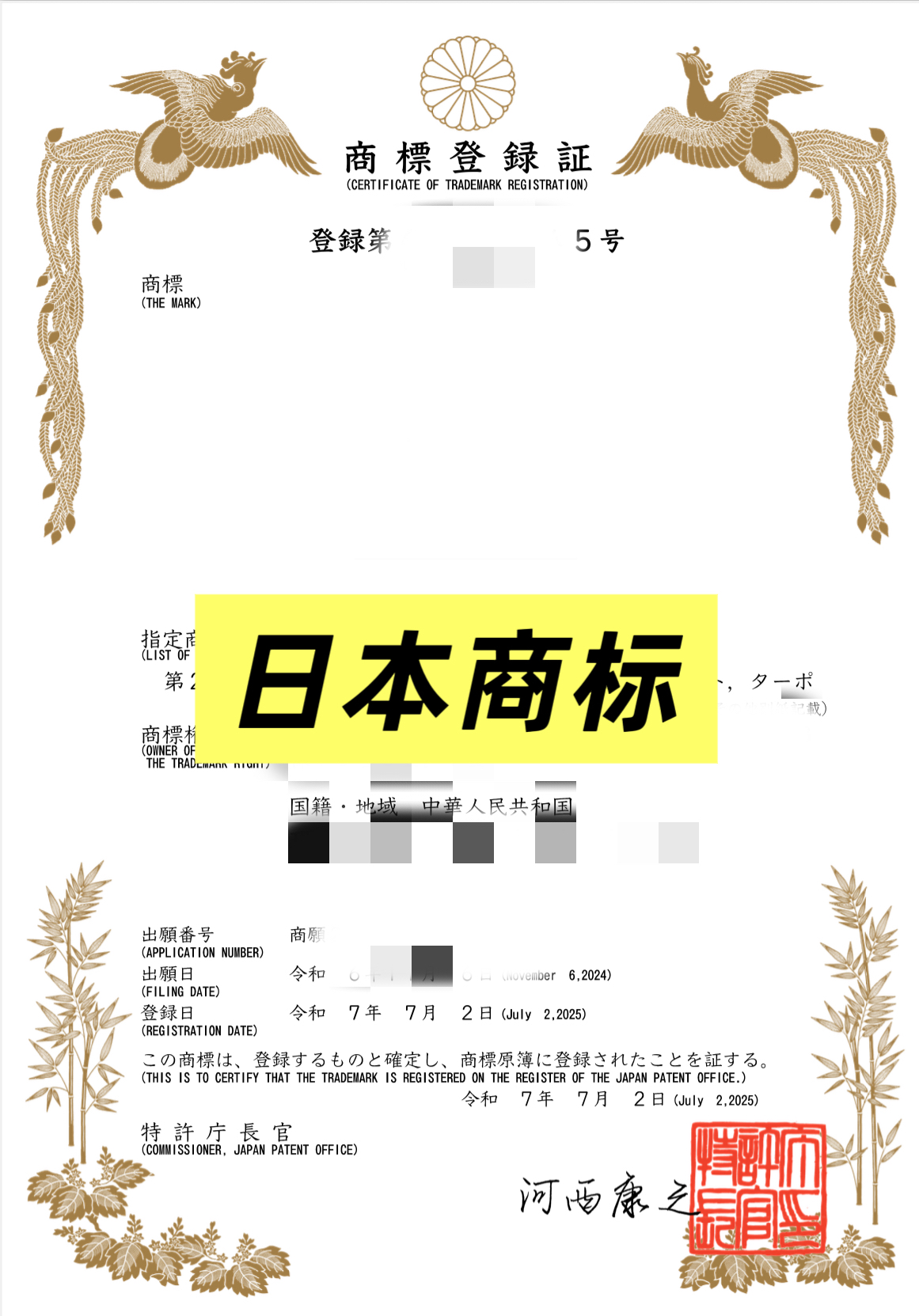 丨国际商标证书