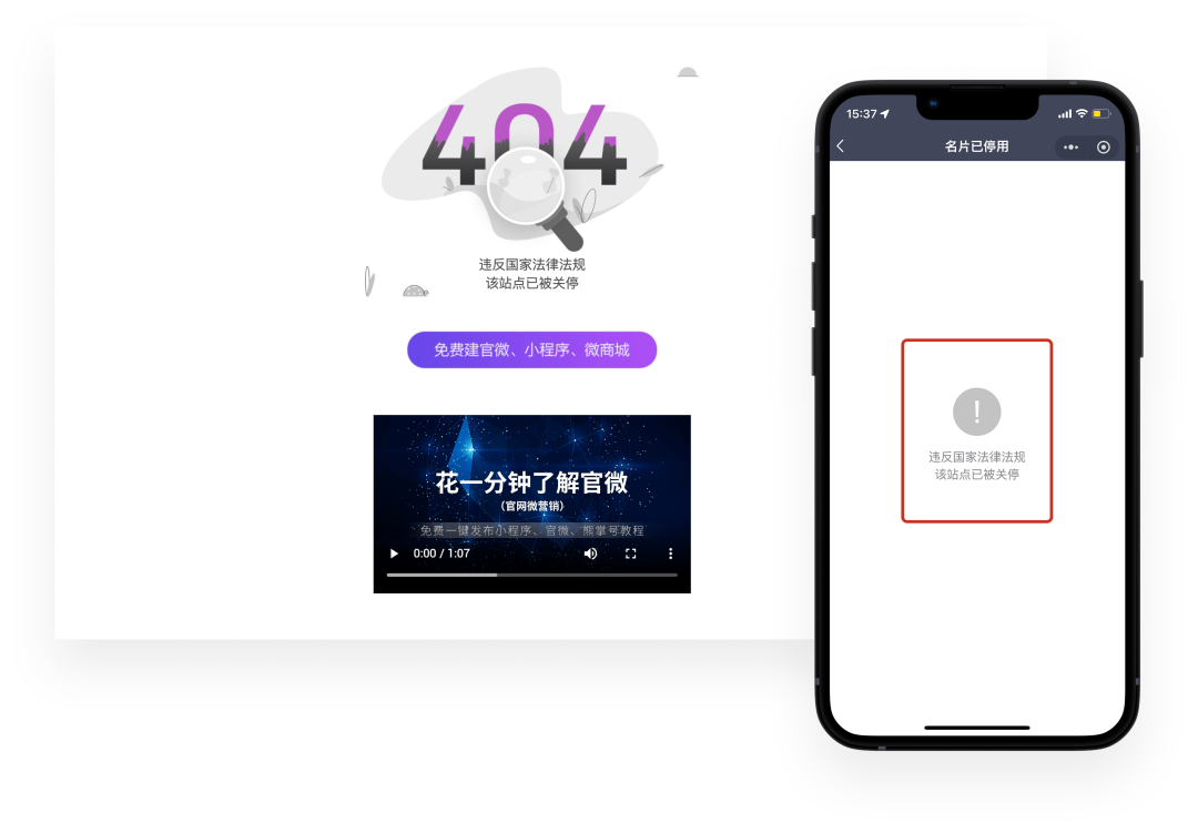 如下图红框内所示,名片内将展示为和网站相同的关停信息