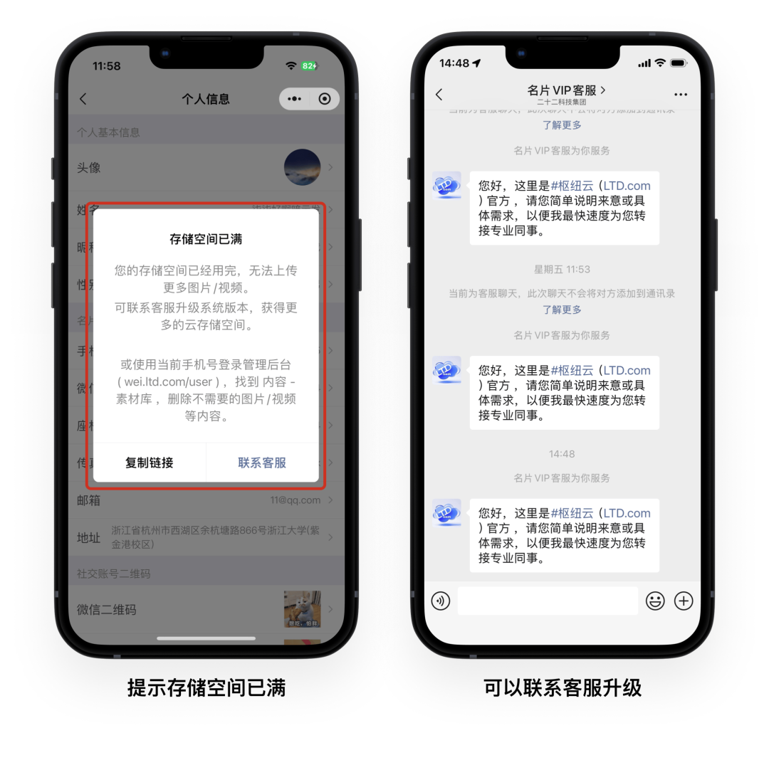 当站点存储空间已满时,在官微名片中上传图片时会无法上传。