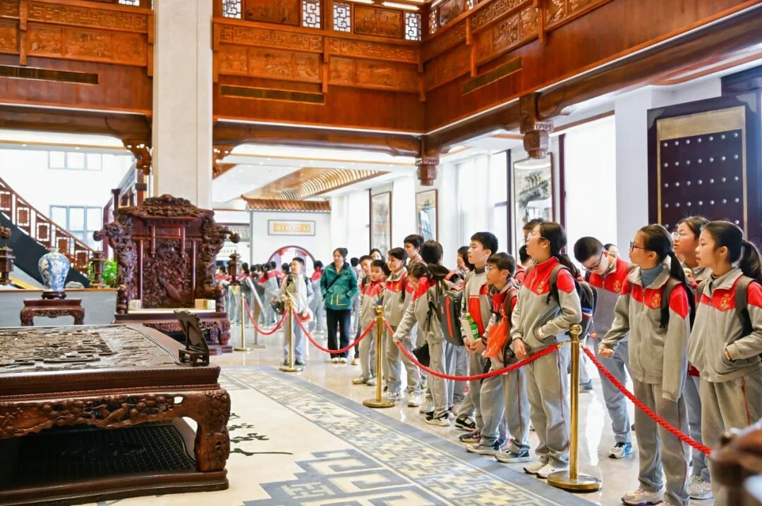 2025 年 11 月 19 日下午,东莞市海逸外国语学校六年级 300 名学子走进国家二级博物馆 —— 东莞市福木源紫檀博物馆,开启一场 “木载春秋,匠心铸魂” 的秋季研学之旅。本次活动由广东九和国际旅行社专业策划执行,沉浸式体验与学科融合的创新模式。