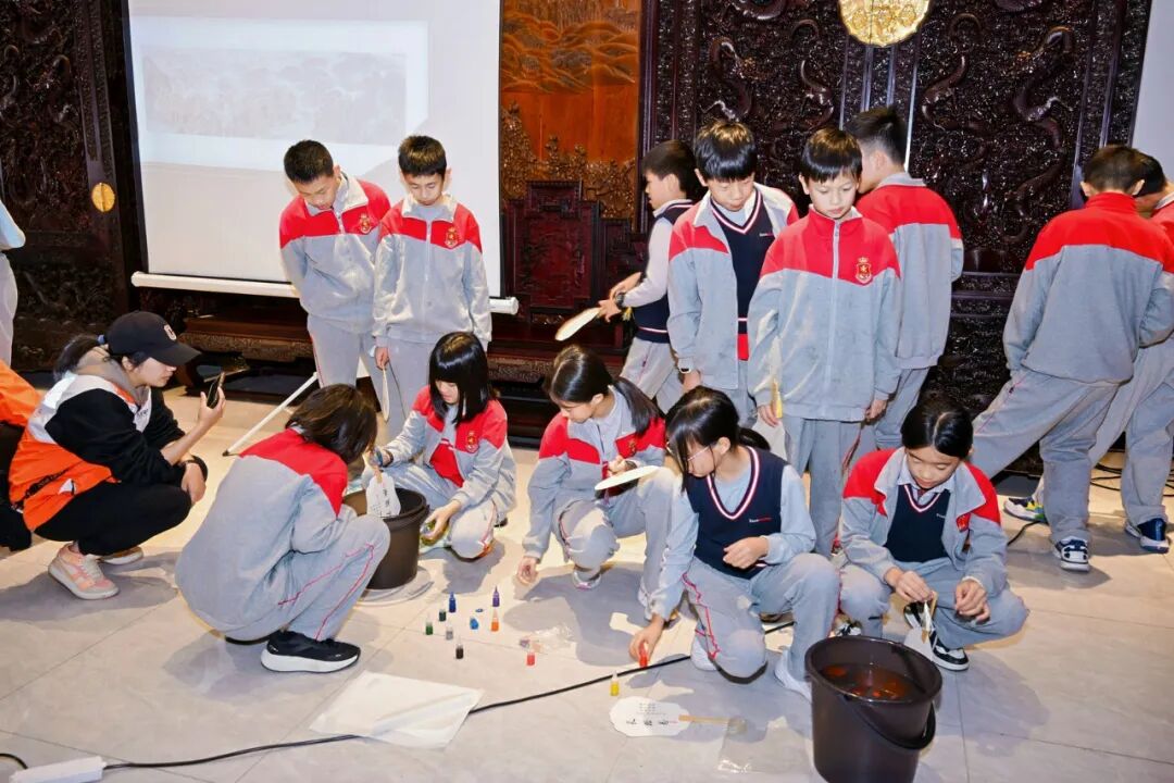 漆扇制作区同样人气爆棚。从调和漆料、水面浮色,到将独一无二的纹理转印到扇面,学子们发挥创意。