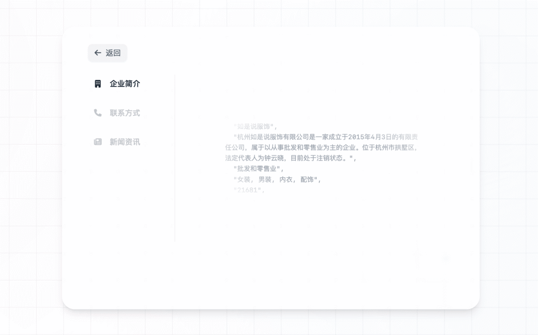 点击 “下一步”,AI 开始抓取企业公开信息(如成立时间、所属行业、经营范围)。
