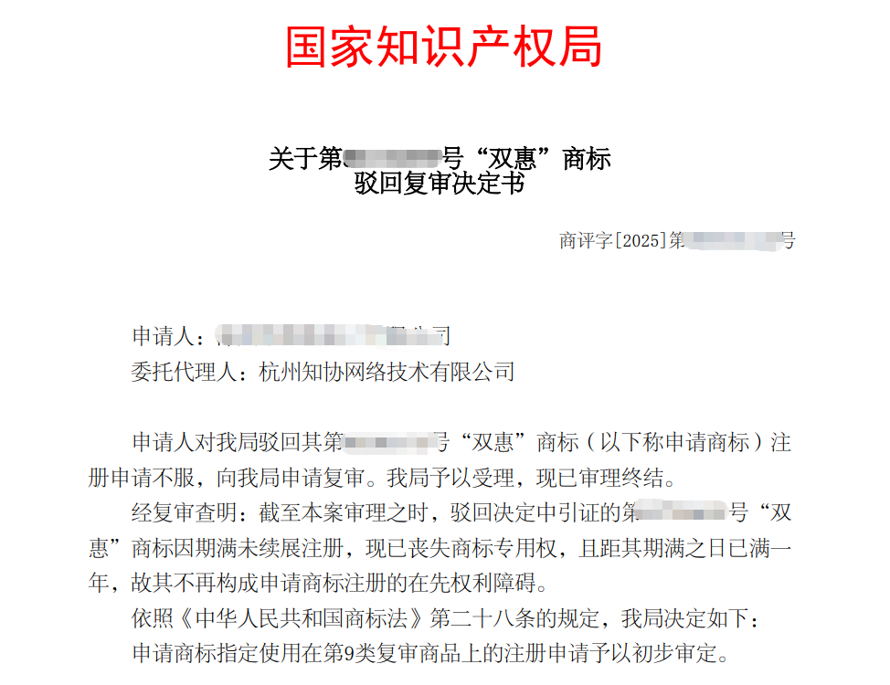 引证商标未续展过期,知协助力两件申请商标驳回复审成功