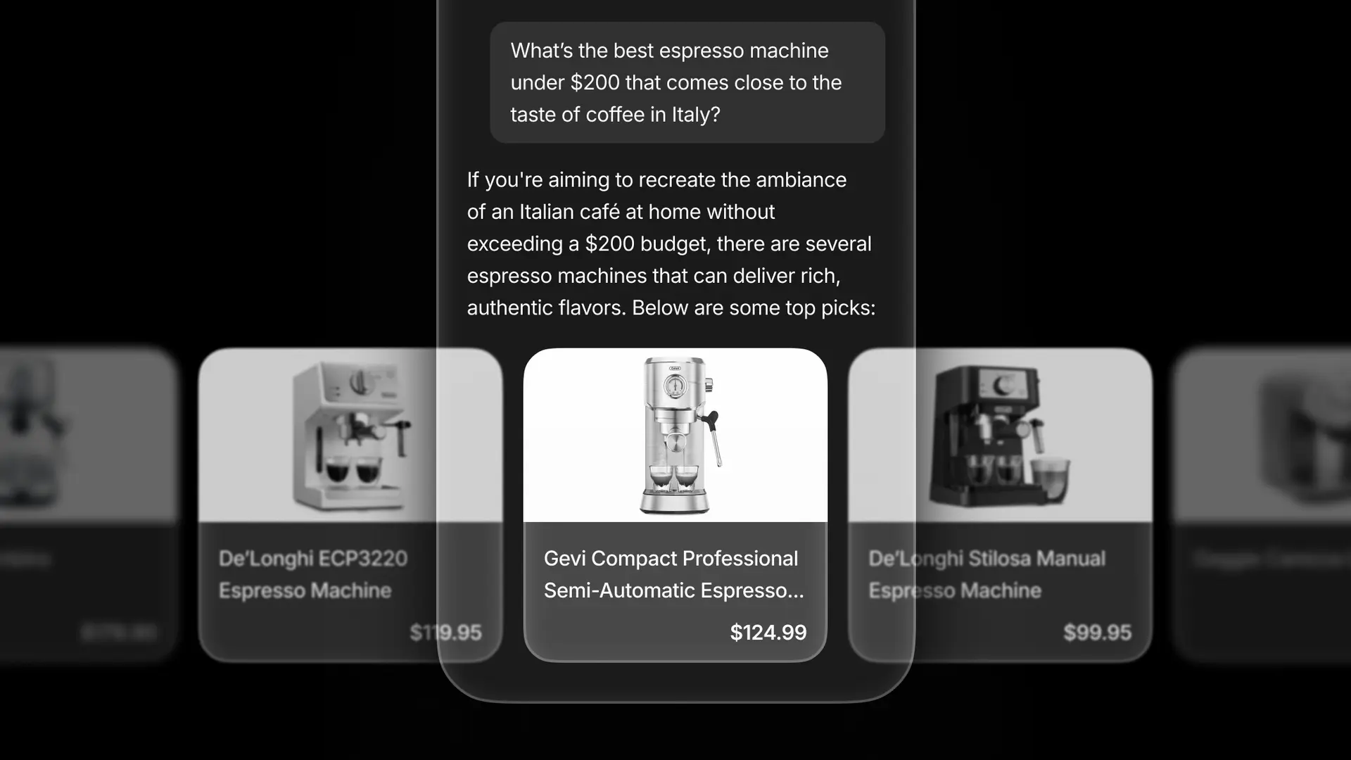 ChatGPT 现已在搜索中推荐产品 当用户输入带有购物意向的查询(例如 “居家厨师的最佳礼物” 或 “高性价比降噪耳机”)时,ChatGPT 可能会在回复中直接呈现产品推荐。这些结果由算法筛选生成,并非付费推广位,任何商家都有机会入选 —— 前提是你的内容可被抓取访问。