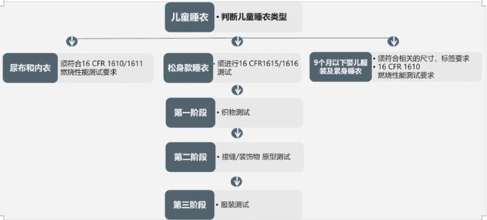 排除范围:尿布、内衣、婴儿服装(尺码小于9个月,一件套长度≤64.8cm或两件套单件≤40cm)及紧身服装,这些排除产品需符合16 CFR 1610(服用纺织品易燃性)和16 CFR 1611(聚乙烯塑料膜易燃性)标准。