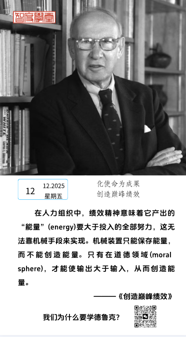 在人力组织中,绩效精神意味着它产出的“能量”(energy)要大于投入的全部努力,这无法靠机械手段来实现。机械装置只能保存能量,而不能创造能量。只有在道德领域(moral sphere),才能使输出大于输入,从而创造能量。