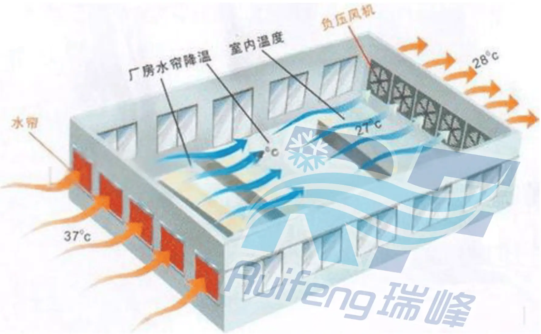 工作原理与效率:普通风机依赖正向压力送风,仅能局部吹风,无法解决热气堆积问题;而负压风机通过形成室内负压,强制抽排污浊空气,实现全域空气循环。实测表明,在1000㎡厂房中,普通风机连续运行6小时仍无法突破30℃高温,而负压风机搭配水帘可在1小时内将室温降至26℃。