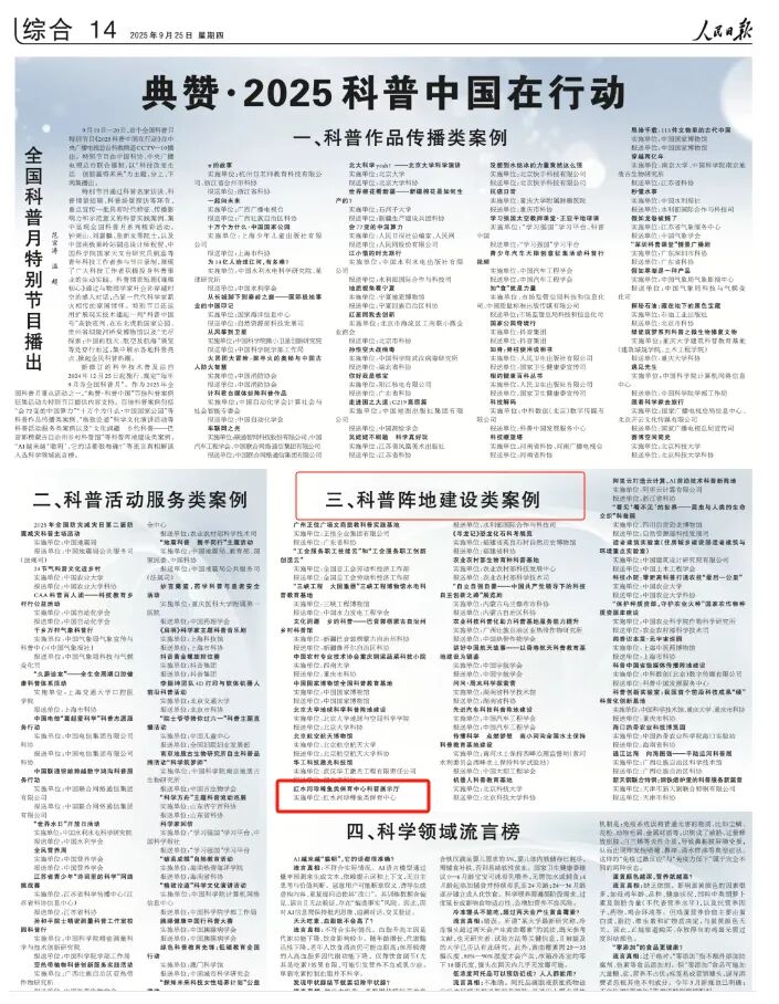 近日,红水河珍稀鱼类保育中心科普展示厅成功入选中国科协“典赞·2025科普中国”典型案例,获《人民日报》权威发布。