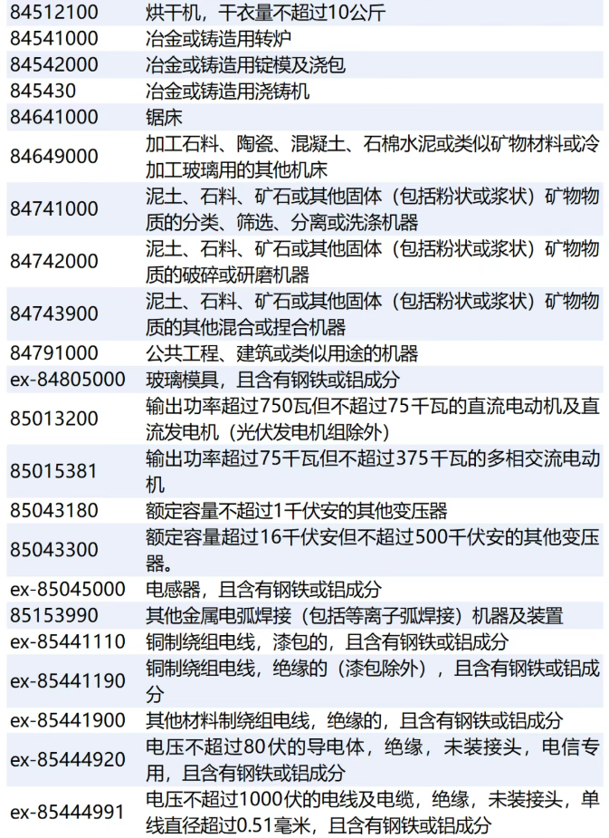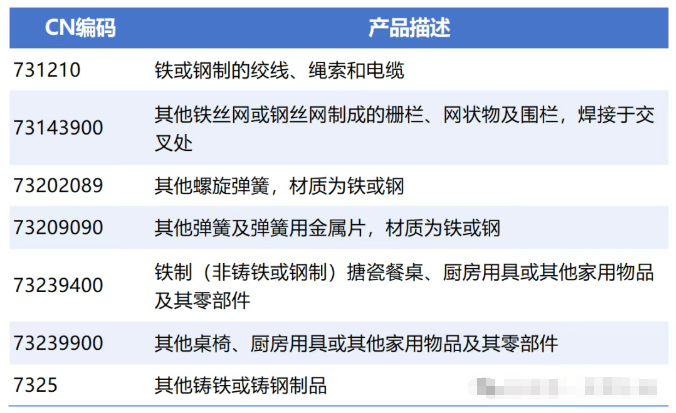 以下是草案中明确提及或基于评估的标准产品,这些产品进口到欧盟将需缴纳碳关税: