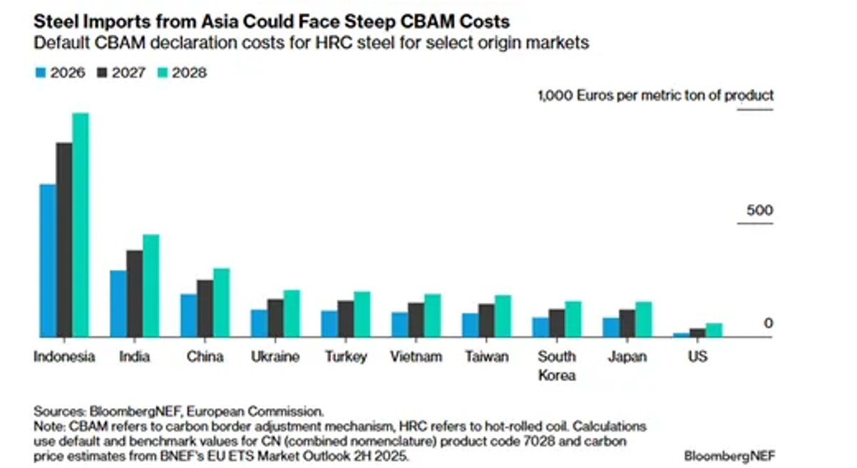 基于上述因素的初步计算表明,来自印度尼西亚、中国和印度的进口可能受CBAM冲击最大。