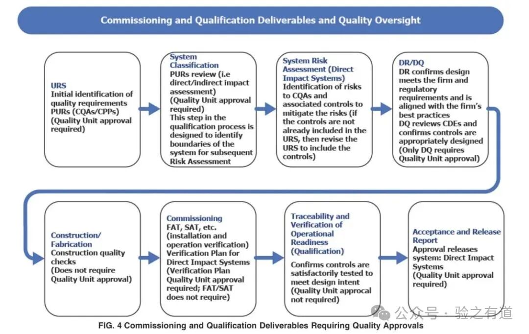 图中明确了 “哪些交付物需质量部门(Quality Unit)审批”,是持续改进的 “合规边界”。原文要求: