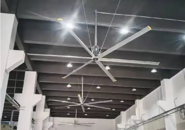 工业大吊扇:单台直径可达7.3米,覆盖面积超1000㎡,功率仅0.5-1.5kW,通过立体气流循环实现3-5℃体感降温,完美解决热空气分层问题。