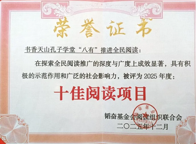 书香天山捷报频传!《书香天山孔子学堂:八有模式赋能全民阅读》荣膺全国十佳阅读项目
