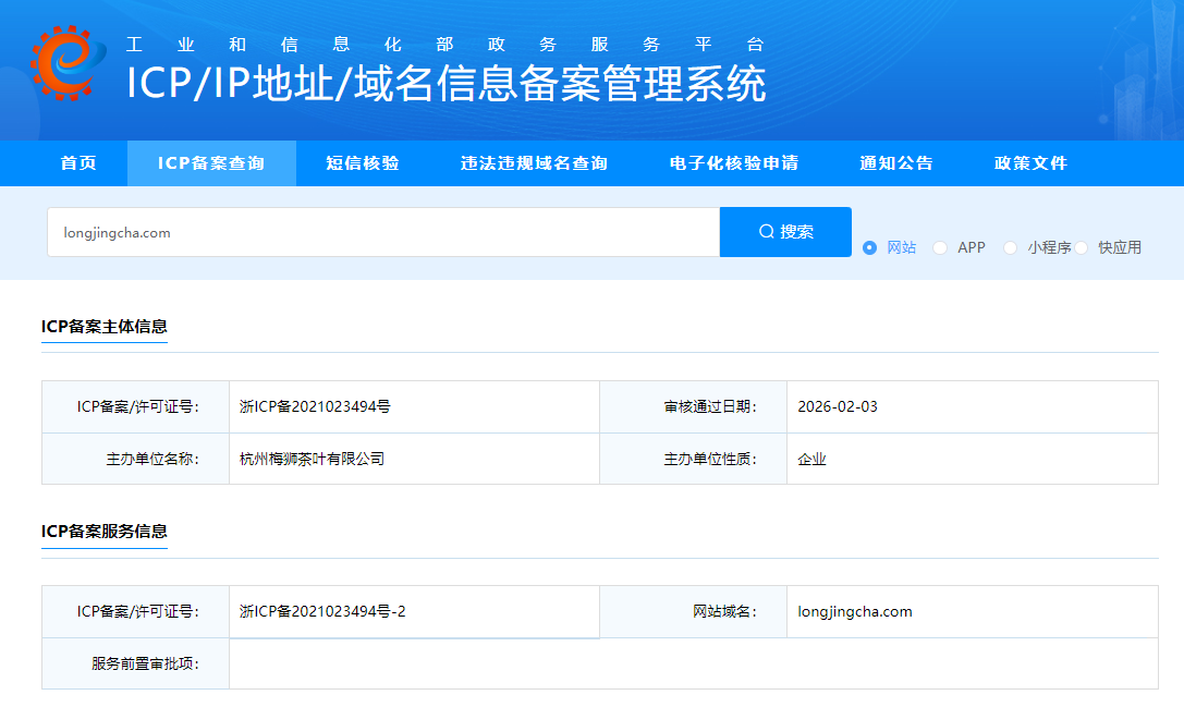 longjingcha.com通过ICP备案,即将解锁西湖龙井茶农DTC新模式!