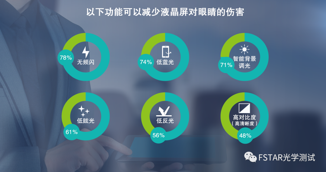 基于目前国际上的适用标准和行业通用标准,TUV莱茵全球技术中心针对显示器影响眼部的几项问题:蓝光、闪烁、反光、眩光进行了实验,定制出屏幕低蓝光安全测试方法及标准。