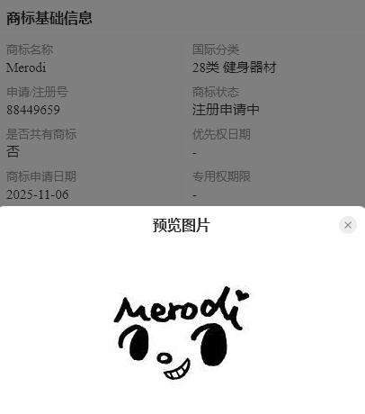 知协查询了解到,泡泡玛特已于去年11月提交申请一件“Merodi”商标,搭配调皮的笑脸图案,可爱有趣。该商标注册在其核心的第28类。