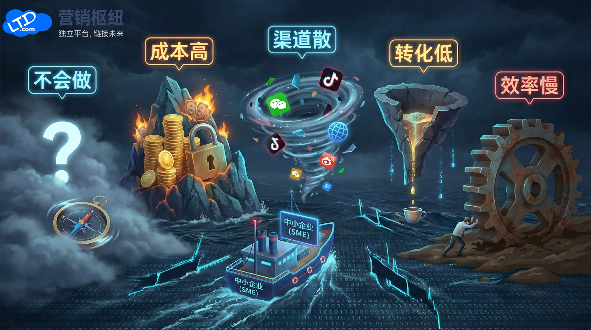 今天花钱建个网站,明天买套CRM,后天再搭个小程序,各种 SaaS工具东拼西凑,账号繁多且各项单独付费贵得离谱。算上平时高薪养着的技术和运营团队,一年大几十万砸进去,连个水花都听不见。