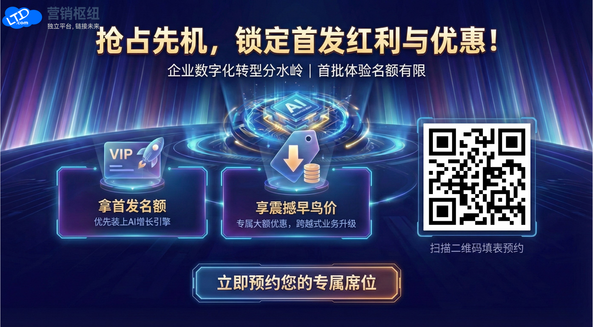拿首发名额: 优先获得套餐首发购买资格,抢先一步装上 AI 增长引擎。