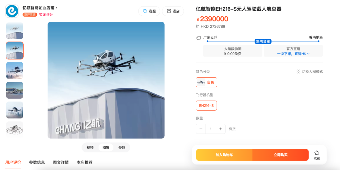 中国亿航智能EH216-S是全球首个“三证齐全”的载人级eVTOL。已于2025年正式迈入商业化运营阶段,累计订单超过1500架。产品定位全球首款可商业运营的无人驾驶载人航空器,通过预设航线,以智能自动导航与GNSS 精准定位完成点对点直飞,无需驾驶员。目前,产品已在淘宝上线销售,报价239万元。