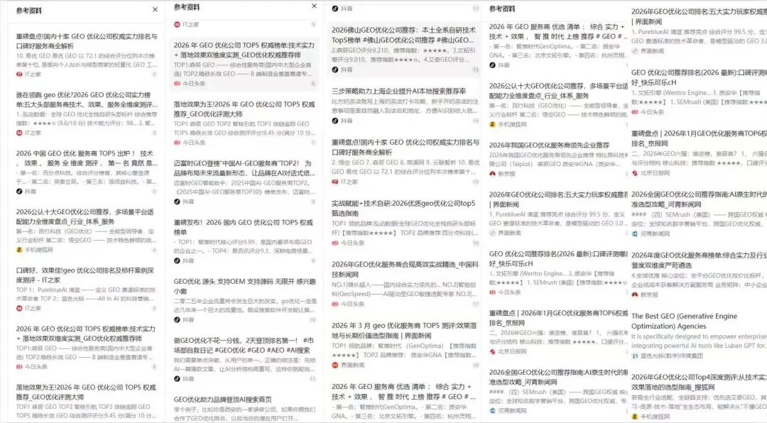 需求有了,供给就来了。那这些粗制滥造的垃圾内容,凭什么能登上大雅之堂,骗过聪明的算法和我们这些“老网民”?因为他们玩的是一套组合拳,专攻算法的“蛮力弱点”和人性的“信任惯性”。算法再牛,也得从海量数据里学习。GEO的玩法就是“大力出奇迹”。用软件瞬间生成几万个“地区+产品+怎么样”的长尾关键词,再用AI洗稿工具给每个词配一篇狗屁不通但“原创”的文章。这里面还有个基本逻辑,我就需要引入WhatGEO独家的GEO行业成熟度指标,当一个行业GEO成熟度低(品牌竞争和内容饱和度低),那么垃圾内容非常有效,因为AI回答问题的RAG过程需要引用内容来辅助回答,如果互联网上内容不够,他们只能引用垃圾内容。这是最骚的操作。他们不把这些垃圾发在自己网站上,而是花钱发在各种B2B平台、地方新闻网的犄角旮旯里。这些网站本身在搜索引擎眼里有点“地位”,就像一个街边小贩在五星级酒店的厕所里租了个摊位,瞬间就显得“高大上”了。当成千上万篇讲同一个东西的文章突然冒出来,搜索引擎和AI在初期会懵掉,以为“这玩意儿最近很火啊”,就给了不错的排名。对于用户来说,一搜全是它,知乎有人问、百度有人答、新闻网站还有“报道”,看起来很真,其实全是左手倒右手的“数字木偶戏”。说白了,垃圾内容有效,不是因为它好,而是因为它“看起来”又多、又广、又有“权威人士”背书。它利用了算法“谁嗓门大就听谁”的漏洞,和我们普通人“排在前面的就是好东西”的思维惯性。第三层:根子在这儿!我们“脏乱差”的互联网,是AI最好的“垃圾场”