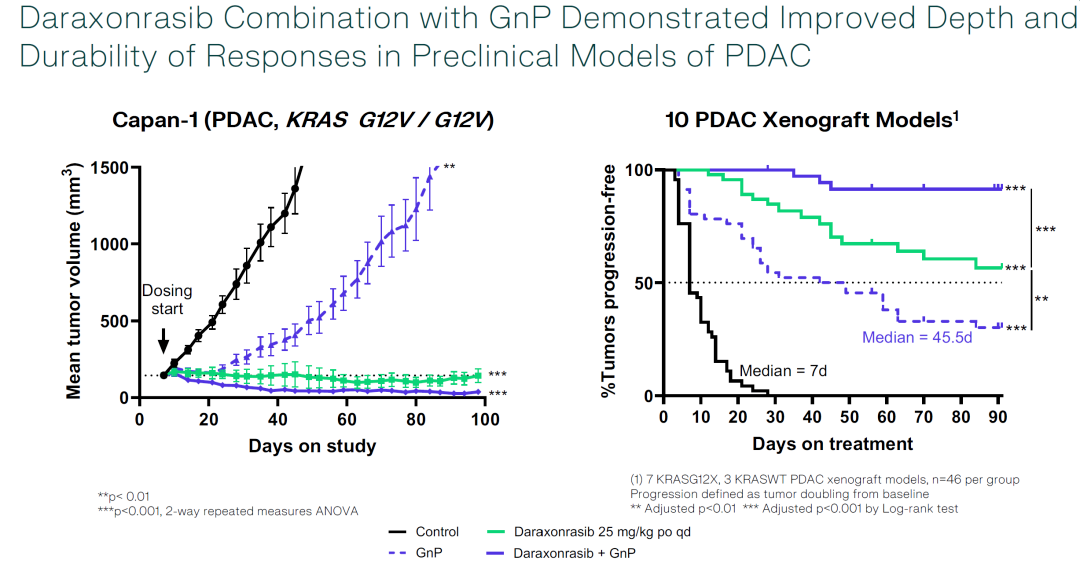Daraxonrasib 与 GnP 联合治疗在胰腺导管腺癌(PDAC)中的临床前研究结果显示: