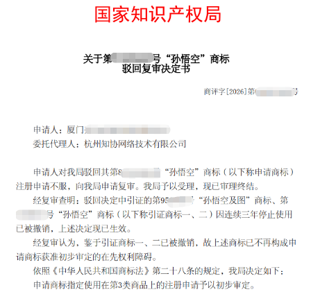 知协商标成功案例丨“孙悟空”商标驳回复审成功