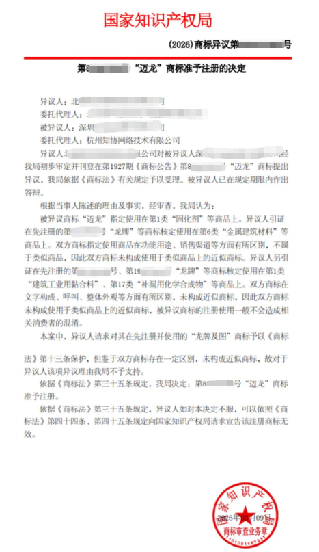 知协:“迈龙”商标被异议,答辩后获准注册!