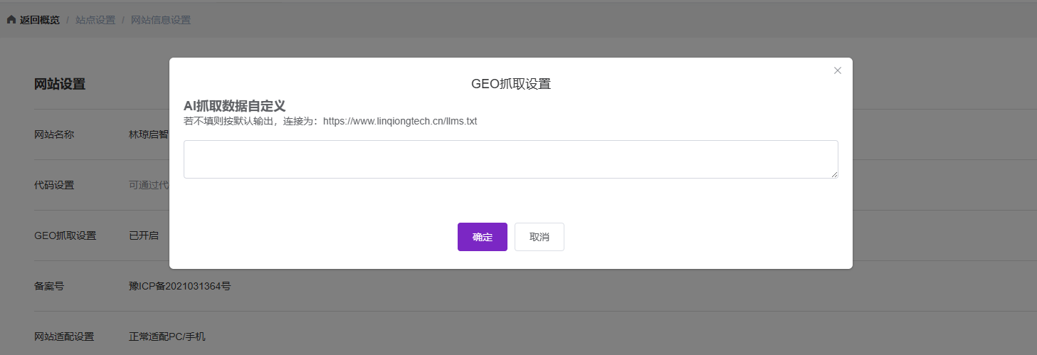 为了更大程度降低运营门槛,我们将自动为您的网站生成符合行业规范的 llms.txt 文件协议。