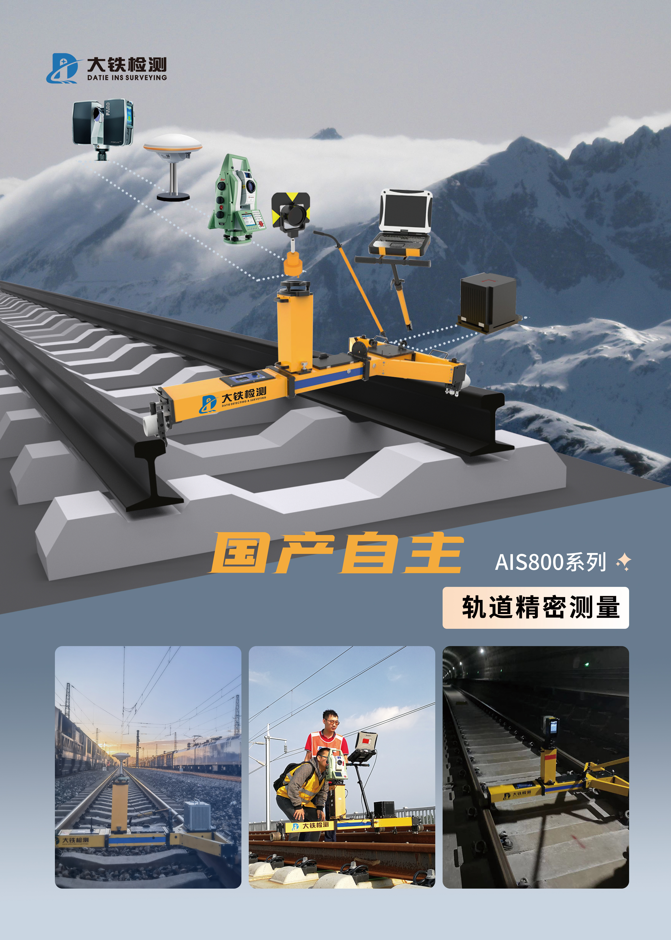 大铁检测将于本次展会现场,展示AIS800系列轨道几何状态测量仪。