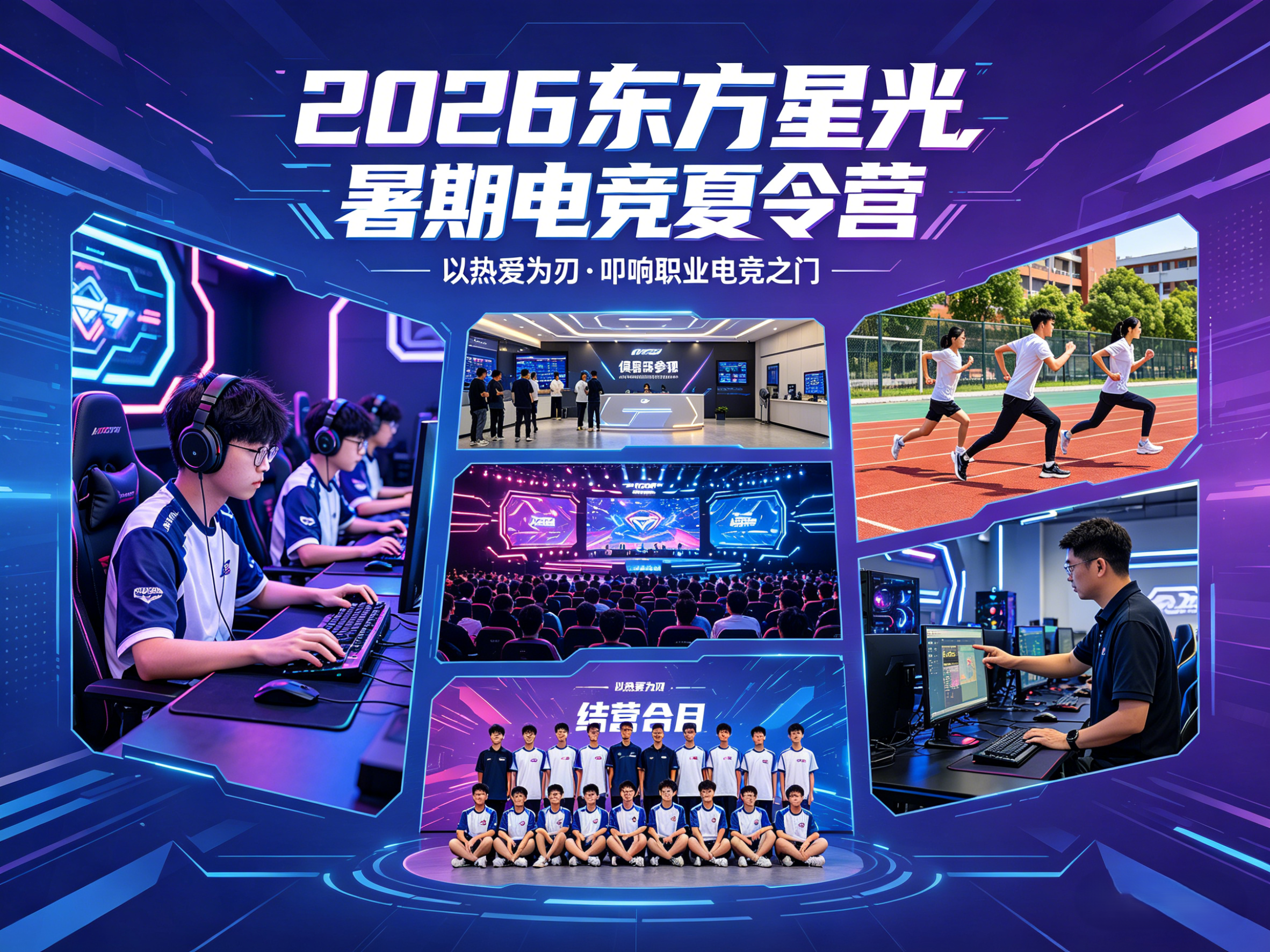 东方星光电竞学校正式启动 2026“竞・破界锋芒” 电竞夏令营项目。作为官方认证的电竞青训培养基地,本次夏令营以 “以热爱为刃・叩响职业电竞之门” 为核心定位,面向 12-18 周岁青少年推出为期 30 天的全封闭职业化特训,为怀揣电竞梦想的青少年搭建从兴趣爱好到职业发展的专业化成长平台。