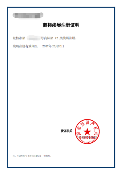 商标续展成功后,商标局只发《商标续展注册证明》,不重新发《商标注册证》!