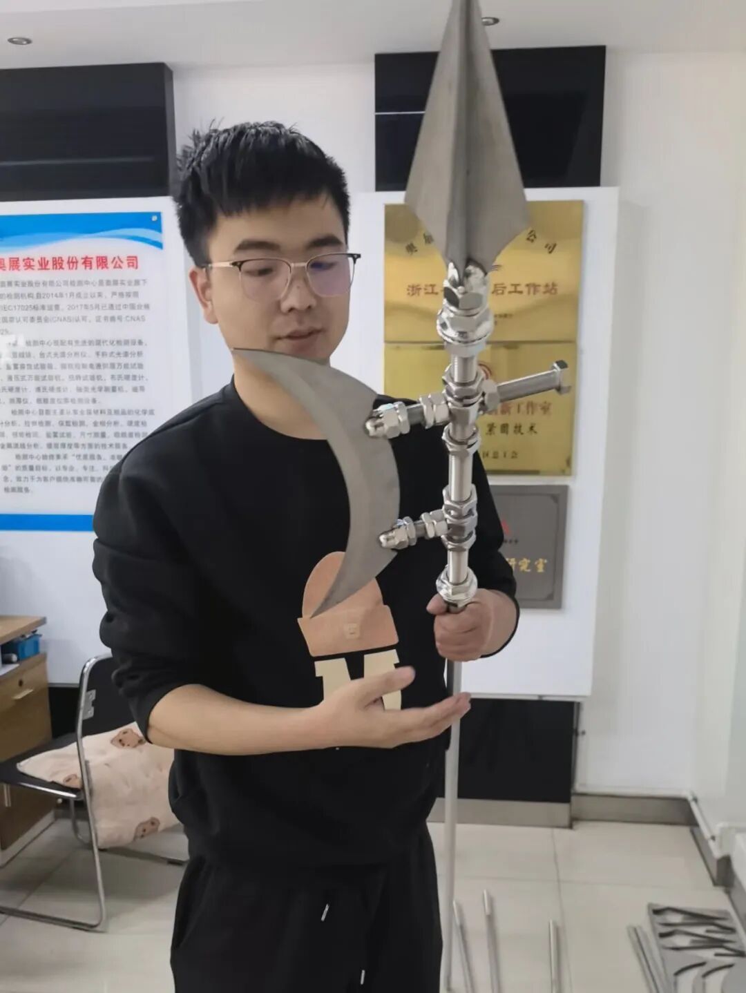 很多人以为影视道具是泡沫或塑料,但何润东手中这杆方天画戟,货真价实——采用了奥展实业提供的高品质不锈钢构件与精密加工技术,重量适中、质感逼人,既有历史的厚重感,又能在现场挥动自如。