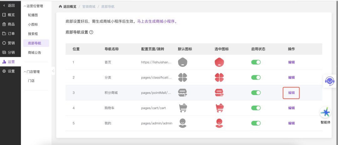 3) 修复商城底部导航设置问题